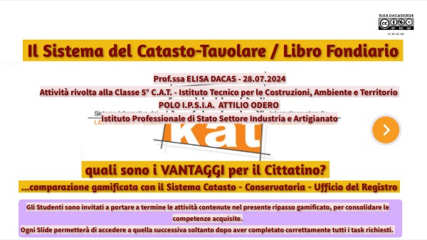 Prof.ssa ELISA DACAS - 28.07.2024Attività rivolta alla Classe 5° C.A.T. - Istituto Tecnico per le Costruzioni, Ambiente e Territorio POLO I.P.S.I.A. ATTILIO ODERO Istituto Professionale di Stato Settore Industria e Artigianato