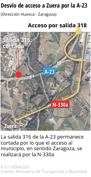 La salida 316 de la A-23 permanece cortada por lo que el acceso al municipio, en sentido Zaragoza, se realizará por la N-330a