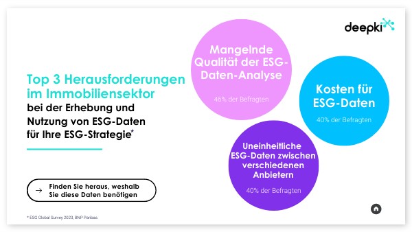 Das 2014 gegründete Unternehmen Deepki hat eine SaaS-Lösung entwickelt, die Data Intelligence nutzt, um Immobilienakteure auf dem Weg zur Klimaneutralität zu unterstützen. Die Lösung von Deepki greift auf mehr als ein Jahrzehnt Erfahrung zurück und nutzt Kundendaten, um die ESG-Leistung (Environmental, Social and Governance) von Immobilien zu verbessern und den Wert der Assets zu maximieren. Deepki ist in 60 Ländern tätig und beschäftigt über 400 Mitarbeiter an Standorten in Paris, London, Berlin, Mailand und Madrid.