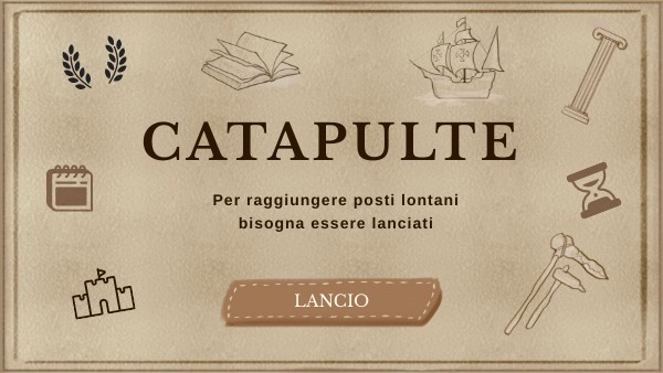 In questo percorso scopriremo una macchina da guerra che si basa sul principio delle leve. Questo artefatto ha rivoluzionato l'antica arte della guerra perché si passerà dal combattimento corpo a corpo al lancio di oggetti pesanti a grandi distanze che permetterà anche di superare barriere come fossati, mura, ecc.