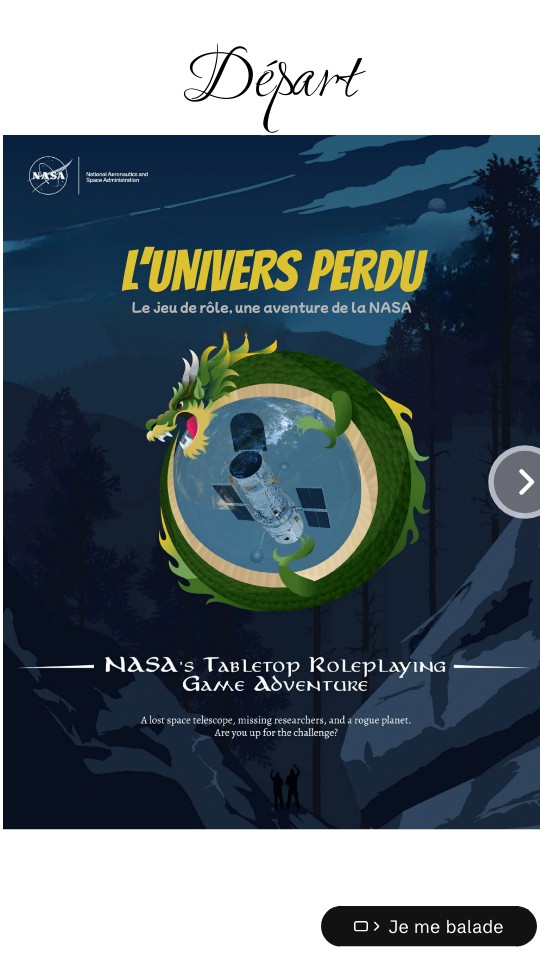 Le jeu de rôle sur le télescope Hubble, une aventure-conférence de la NASA. Traduction française de https://science.nasa.gov/mission/hubble/multimedia/online-activities/the-lost-universe/