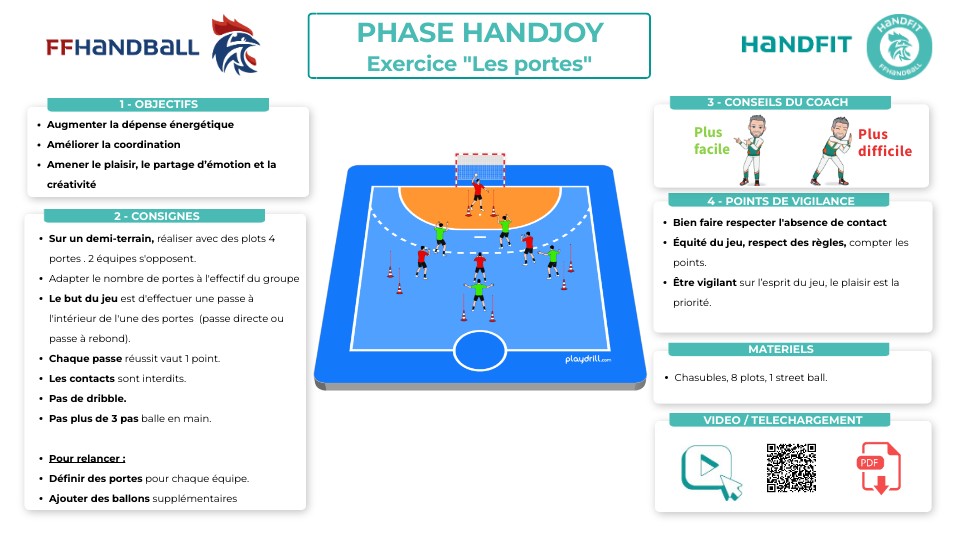 - Sur un demi-terrain, réaliser avec des plots 4 portes . 2 équipes s'opposent.