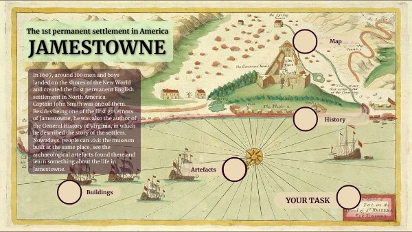 You belong to the staff responsible for preparing an open day promoting your museum. You have to come up with the programme containing at least 3 different activities which will help the visitors learn something about the history of the settlement, the life in the colony in the 17th century, the most important figures connected with this place and will show them the site itself as well. You have to choose your target audience - kids, teenagers, academics, seniors... Then prepare a very short presentation in Canva (1 slide per activity) to inform the team leader of your suggestions. You are going to present it within 2 minutes.