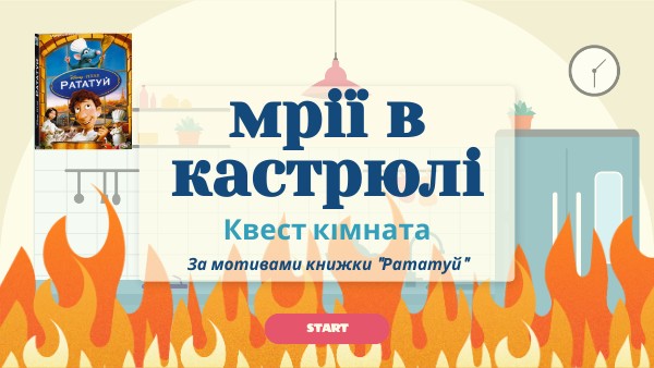 Приготуйтеся до захоплюючої подорожі в світ кулінарних пригод разом з талановитим щуреням, яке мріє стати великим шеф-кухарем. Ваша мета - допомогти Ремі здійснити його мрію, розв'язуючи цікаві питання за змістом книги. У цій кімнаті вас чекають запитання та випробування, які перевірять вашу уважність та знання твору. Готові випробувати свої сили та відкрити кулінарні секрети разом з маленьким шефом? Приступайте до квесту та доведіть, що мрії можуть здійснюватися! Він залишив для вас підказку у записці...
