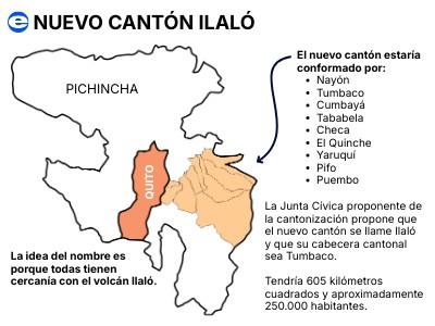 La Junta Cívica proponente de la cantonización propone que el nuevo cantón se llame Ilaló y que su cabecera cantonal sea Tumbaco. Tendría 605 kilómetros cuadrados y aproximadamente 250.000 habitantes.