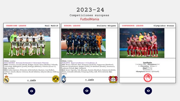FINAL. Dublín. ATALANTA - Bayer Leverkusen: 3-0 (Lookman, 3) ATA. Musso, Djimsiti, Hien, Kolasinac (Scalvini), Zappacosta (Hateboer), Ederson, Koopmeiners, Ruggeri (Toloi), De Ketelaere (Pasalic), Sacamacca, Lookman (Touré). Ent.: Gasperini BLE. Kovar, Tapsoba, Tah, Hincapie, Stanisic (Boniface), Palacios (Andrich), Xhaka, Grimaldo (Hlozek), Frimpong (Tella), Adli, Wirtz (Schick). Ent.: Alonso