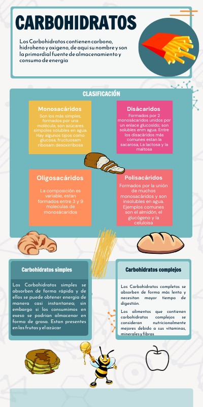 Los Carbohidratos contienen carbono, hidroheno y oxigeno, de aqui su nombre y son la primordial fuente de almacenamiento y consumo de energía