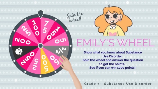 Show what you know about Substance Use Disorder. Spin the wheel and answer the question to get the points. See if you can win 1200 points!