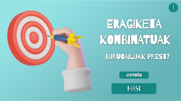 Matematikaren mundu liluragarrian murgildu baino lahen, zure izena jakin nahiko nuke. Idatzi zure izena jarraian ikusten duzun espazioan. Horrela, eragiekta konbinatuetan zehar egin dugun bidaian izan duzun esperientzia pertsonalizatu ahal izango dut.