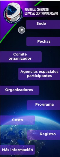 El comité organizador del II Congreso Espacial Centroamericano 2024 está integrado por: MSc. M.A. José Bagur Coordinador del Laboratorio de Aeroespacial UVG Dra. Leonora de Lemos Coordinadora Grupo de Ingeniería Aeroespacial Universidad de Costa Rica Licda. Katherinne Herrera-Jordan Fundadora y directora de Verne Technologies Dr. Javier Mejuto Decano de la Facultad de Ciencias Espaciales Universidad Nacional Autónoma de Honduras Dr. Andrés Mora Astrobee Engineering Lead NASA Ames Research Center Dr. Luis Zea Profesor Adjunto Universidad de Colorado Boulder Fundador