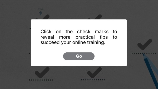 Click on the check marks to reveal more practical tips to succeed your online training.