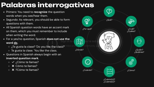 - All Spanish question words have an accent mark on them, which you must remember to include when writing the word.