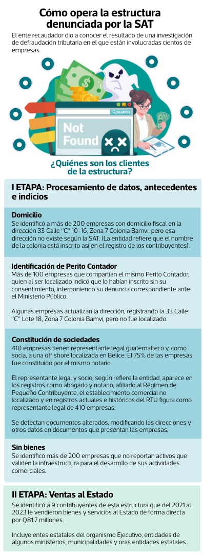 Se identificó a 9 contribuyentes de esta estructura que del 2021 al 2023 le vendieron bienes y servicios al Estado de forma directa por Q81.7 millones.