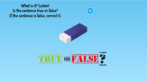 What is it? Listen! Is the sentence true or false? If the sentence is false, correct it.