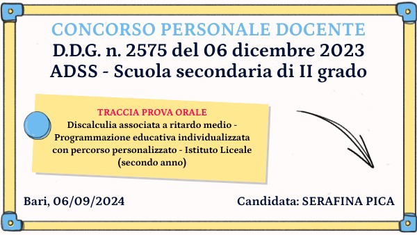 TRACCIA PROVA ORALE Discalculia associata a ritardo medio - Programmazione educativa individualizzata con percorso personalizzato - Istituto Liceale (secondo anno)