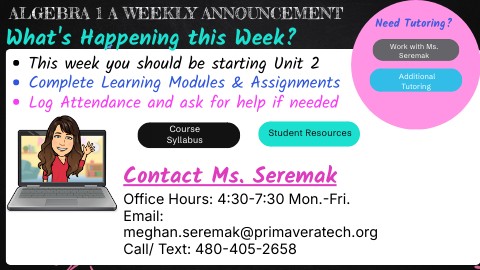Algebra 1 A Weekly Announcement