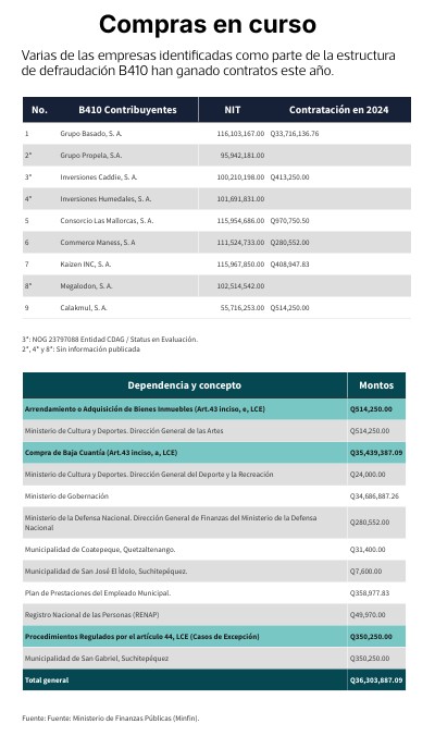 Varias de las empresas identificadas como parte de la estructura de defraudación B410 han ganado contratos este año.