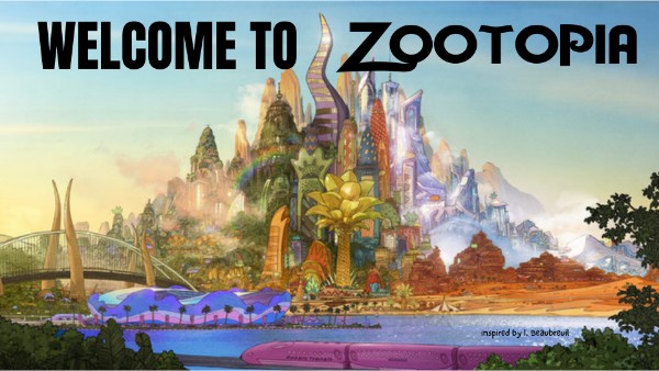 Zootopia is a modern town. There are animals. There are foxes, sheep, buffalo. There is a desert in Sahara Square. There are mountains in Tundratown.