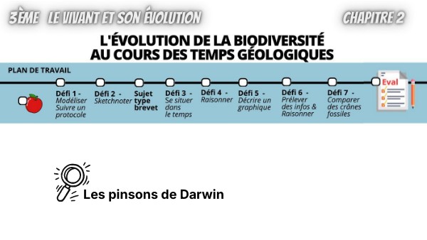 1. Qui était Charles Darwin ? 2. Sur quel navire a-t-il fait son voyage ? 3. Que remarque-t-il sur les pinsons des îles Galápagos ? 4. Qu’est-ce que la sélection naturelle ? 5. Donne un exemple d’adaptation d’un animal à son milieu. + TROUVE L'ERREUR !