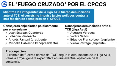 Mientras los integrantes de la Liga Azul fueron denunciados ante el TCE, el correísmo impulsa juicios políticos contra la otra facción de consejeros en el CPCCS.