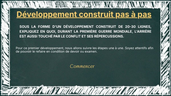 Sous la forme d'un développement construit de 20-30 lignes, expliquez en quoi, durant la Première Guerre mondiale, l'arrière est aussi touché par le conflit et ses répercussions.