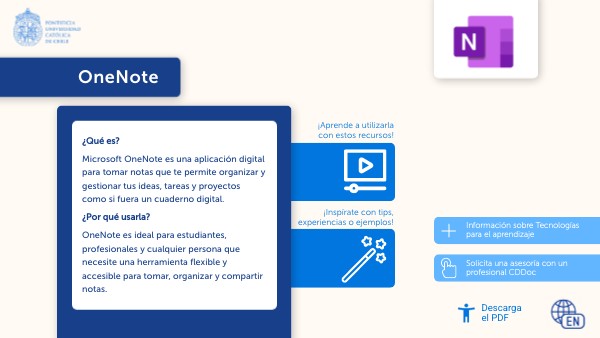 ¿Qué es? Microsoft OneNote es una aplicación digital para tomar notas que te permite organizar y gestionar tus ideas, tareas y proyectos como si fuera un cuaderno digital. ¿Por qué usarla? OneNote es ideal para estudiantes, profesionales y cualquier persona que necesite una herramienta flexible y accesible para tomar, organizar y compartir notas.