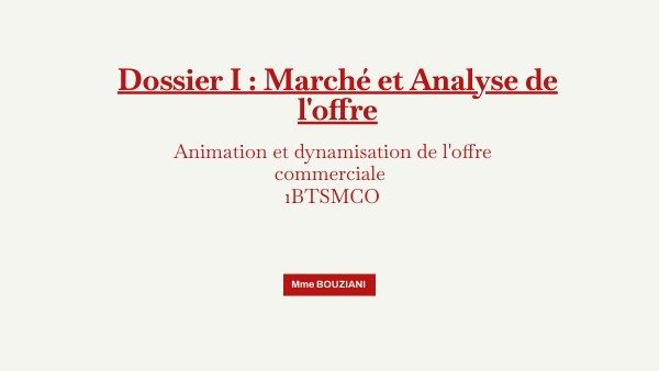 Animation et dynamisation de l'offre commerciale 1BTSMCO