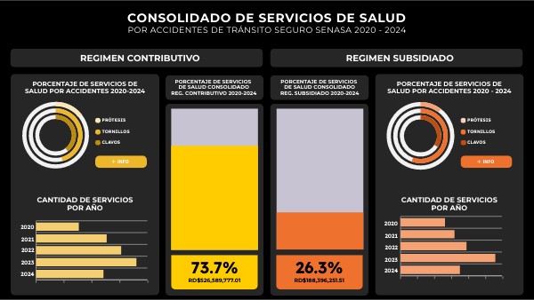 Consolidado Cantidad de servicios de salud, población usuaria y valor autorizado RD$ en protesis, clavos y tornnillos por accidentes de tránsito Reg. Contributivo periodo 2020-2024