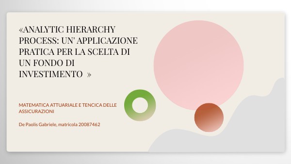 «ANALYTIC HIERARCHY PROCESS: un' applicazione pratica per la scelta di un fondo di investimento »