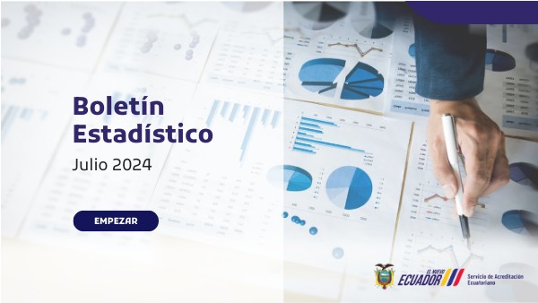 El Servicio de Acreditación Ecuatoriano (SAE), como entidad adscrita al Ministerio de Producción, Comercio Exterior, Inversiones y Pesca (MPCEIP), desempeña un papel crucial en el fortalecimiento de la Infraestructura de la Calidad del Ecuador, generando confianza y calidad en los servicios que ofrecen diversos organismos de evaluación de la conformidad. SAE como ente oficial de acreditación en el país, busca acreditar la competencia técnica de los organismos que operan en materia de evaluación de la conformidad como: laboratorios de ensayo, calibración, clínicos, organismos de certificación y de inspección. Este Boletín Estadístico, elaborado por la Dirección de Análisis de la Acreditación utiliza fuentes de información primarias provienentes directamente de las áreas técnicas del SAE y tiene como finalidad de proporcionar una visión clara y actualizada de la dinámica de acreditación en el país. Se destaca como una herramienta esencial que facilita la comprensión de cifras claves y tendencias relacionadas con la Acreditación. Atentamente, Dirección de Análisis de la Acreditación