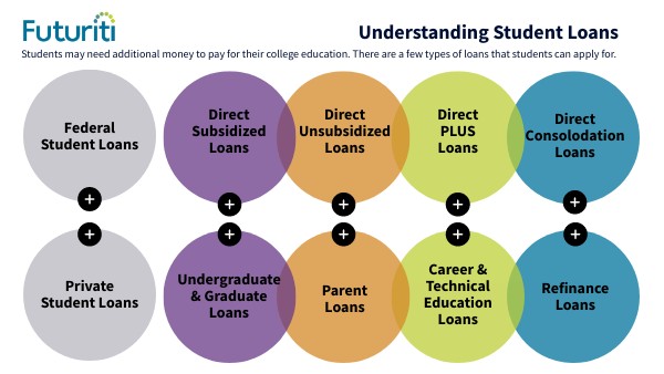 Students may need additional money to pay for their college education. There are a few types of loans that students can apply for.