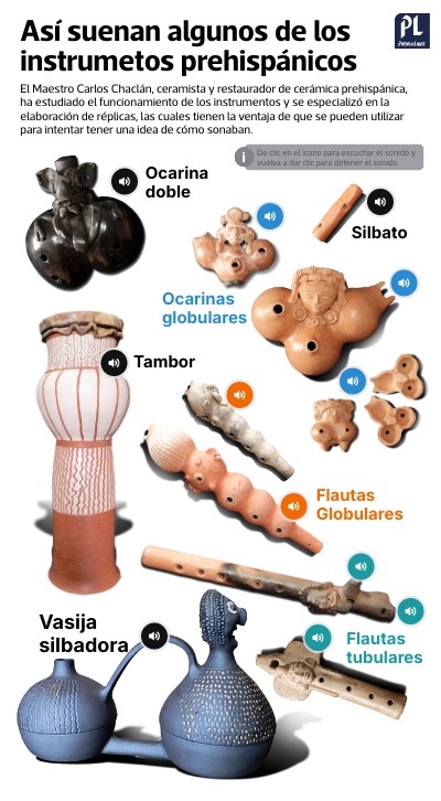 El Maestro Carlos Chaclán, ceramista y restaurador de cerámica prehispánica, ha estudiado el funcionamiento de los instrumentos y se especializó en la elaboración de réplicas, las cuales tienen la ventaja de que se pueden utilizar para intentar tener una idea de cómo sonaban.