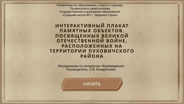 Интерактивный плакат памятных объектов, посвященных великой Отечественной войне, расположенных на территории Пуховичского района