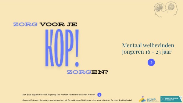 - Dit is een lokaal werkinstrument de tool is louter informatief en omvat partners uit Eerstelijnszone Middenkust (Oostende, Bredene, De Haan & Middelkerke).