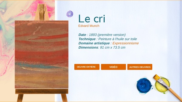 Date : 1893 (première version) Technique : Peinture à l'huile sur toile Domaine artistique : Expressionnisme Dimensions: 91 cm x 73.5 cm
