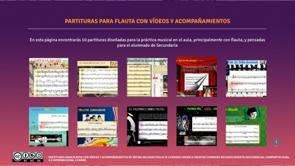 PARTITURAS PARA FLAUTA CON VÍDEOS Y ACOMPAÑAMIENTOS BY FÁTIMA DELGADO POLLO IS LICENSED UNDER A CREATIVE COMMONS RECONOCIMIENTO-NOCOMERCIAL-COMPARTIR IGUAL 4.0 INTERNACIONAL LICENSE.
