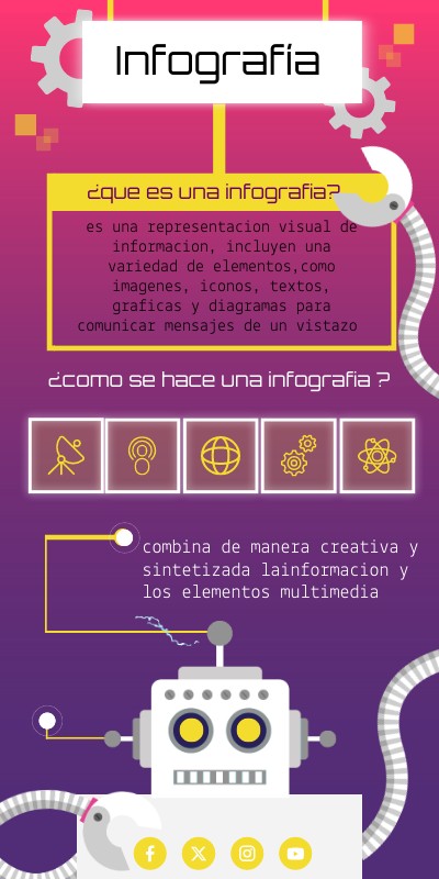es una representacion visual de informacion, incluyen una variedad de elementos,como imagenes, iconos, textos, graficas y diagramas para comunicar mensajes de un vistazo