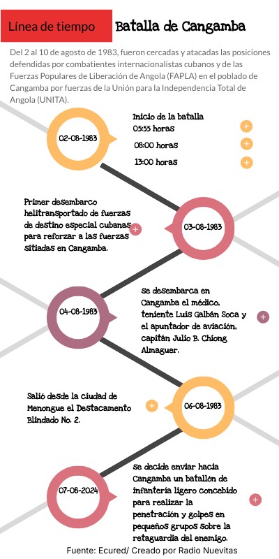 Del 2 al 10 de agosto de 1983, fueron cercadas y atacadas las posiciones defendidas por combatientes internacionalistas cubanos y de las Fuerzas Populares de Liberación de Angola (FAPLA) en el poblado de Cangamba por fuerzas de la Unión para la Independencia Total de Angola (UNITA).