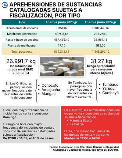 Incautación de droga en el DMQ 2020-2024