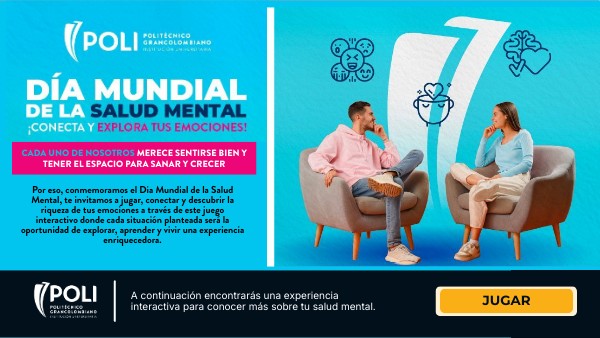 Por eso, conmemoramos el Dia Mundial de la Salud Mental, te invitamos a jugar, conectar y descubrir la riqueza de tus emociones a través de este juego interactivo donde cada situación planteada será la oportunidad de explorar, aprender y vivir una experiencia enriquecedora.