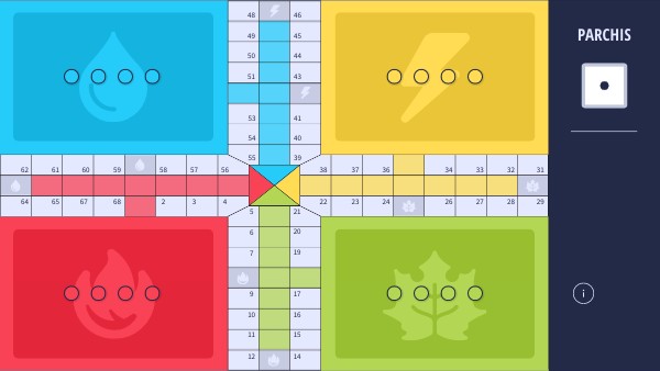 🎲 PARCHÍS: INSTRUCTIONS FOR HAVING A GREAT TIME Players: From 2 to 4 people. Tokens and Home: Each player chooses a color (yellow, blue, red, or green) and has 4 tokens of that color. Each player starts in their "home", which is the area of the board with the same color. Safe Spaces: There are 8 special spaces (gray with symbol) where your tokens are safe from being captured. Objective: Be the first to move your 4 tokens from the home to the goal, traveling across the entire board! 🚀 How to Play Starting: Everyone rolls the digital die. The player with the highest number goes first. Leaving Home: Roll a 5 on the die to move your tokens out of the home. Moving Tokens: Roll the die and move a token the number of spaces indicated by the die. Double Turn with a 6!: If you roll a 6, you get an extra turn. And if all your tokens are out of the home, a 6 counts as 7. Bridges: If two tokens of the same color are on the same space, they form a bridge and block the path for others. Opening Bridges: If you roll a 6 and have a bridge, you must move one of those tokens. Capturing Tokens: If you land on a space with an opponent's token (that is not safe), you capture it and send it back to their home. And you move one of your tokens 20 spaces! Reaching the Goal: Go around the board and roll the exact number on the die to enter the goal. In the arrival row, your tokens are safe from being captured. Counting 10: If a token reaches the goal, move another one of your tokens 10 spaces. 🏆 Winning the Game The first person to get all 4 of their tokens into the goal, wins!