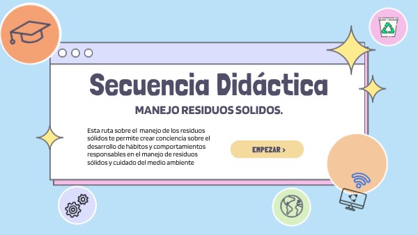 La secuencia didáctica que se presenta tiene como objetivo fortalecer el manejo de residuos sólidos en los estudiantes de grado sexto. A través de esta propuesta dinámica, flexible, e innovadora los estudiantes del grado sexto accederán a contenidos interactivos que les permitirán explorar de manera profunda los conceptos clave sobre el reciclaje, la clasificación de residuos y la importancia de reducir el impacto ambiental.