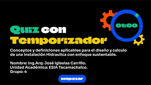 Conceptos y definiciones aplicables para el diseño y calculo de una instalación Hidraulica con enfoque sustentable. Nombre: Ing.Arq: José Iglesias Carrillo. Unidad Académica: ESIA Tecamachalco. Grupo: 4