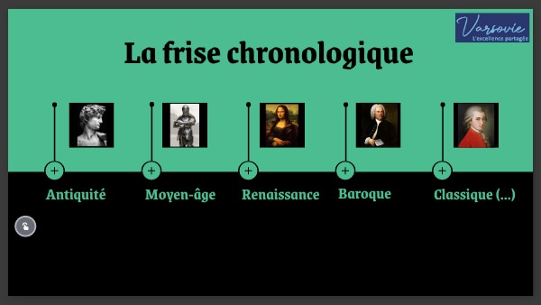La frise chronologique est une "ligne du temps" qui nous permettra de placer compositeurs / oeuvres / évènements que nous étudierons cette année. Ainsi, nous pourrons voir où ils se situent par rapport aux autres.