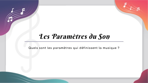 Pour comprendre comment fonctionne la musique, nous allons étudier ses "paramètres". Ils sont généralement divisés en quatre catégories : Intensité, tempo, timbre et hauteur.