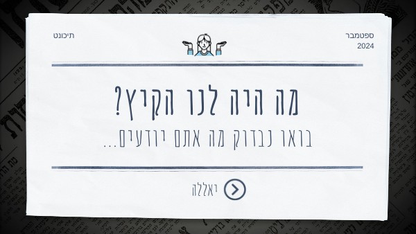 אחד הנושאים הכי בוערים בישראל הגיע הקיץ לשיא, כשבגץ הכריע שלא ניתן עוד לדחות את גיוס החרדים, וכל עוד זה לא קורה - יופסקו תקציב לישיבות ולקצבאות. ברוח המלחמה, ההתנגדות להחלטה היתה חלשה אפילו מתוך הקואליציה, וצה"ל התחיל להוציא צווי גיוס לאלפים. אלא שרק בודדים התייצבו, ולא נראה שזה ישתנה בקרוב.