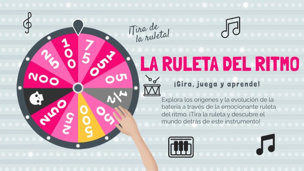 Explora los orígenes y la evolución de la batería a través de la emocionante ruleta del ritmo. ¡Tira la ruleta y descubre el mundo detrás de este instrumento!