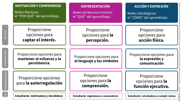 Plantilla basada en la ilustración del Marco DUA versión 2.2. CAST, 2018. (Se cambia el orden de la versión anterior pero se mantiene numeración)