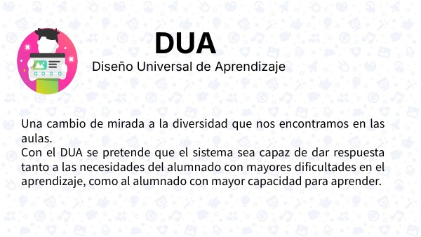 Una cambio de mirada a la diversidad que nos encontramos en las aulas. Con el DUA se pretende que el sistema sea capaz de dar respuesta tanto a las necesidades del alumnado con mayores dificultades en el aprendizaje, como al alumnado con mayor capacidad para aprender.