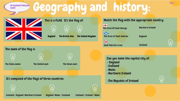 The Union Jack is the United Kingdom Flag: it is composed of three flags: - the English flag - the Scottish flag - the Northern Ireland flag